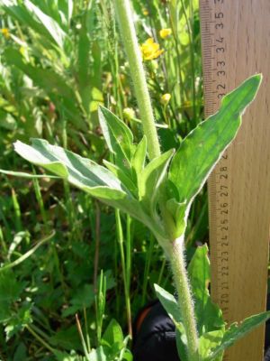 - Kennzeichen: Zwanzig bis fünfzig Zentimeter hohe ausdauernde, krautige Pflanze; Stängel aufrecht, im oberen Teil verzweigt, nicht klebrig, dicht kurzhaarig und schütter langhaarig; keine eigentlichen Rosettenblätter, Stängelblätter gegenständig, länglich, mit breitem, zottig behaartem Stiel, obere sehr kurz gestielt oder sitzend, untere bis vier Zentimeter lang und bis eineinhalb Zentimeter breit; Blüten weißlich bis blassrosa, öffnen sich meist am späten Nachmittag oder Abend, Kelch langröhrig und leicht aufgebläht; Blütezeit: Juni bis Juli.