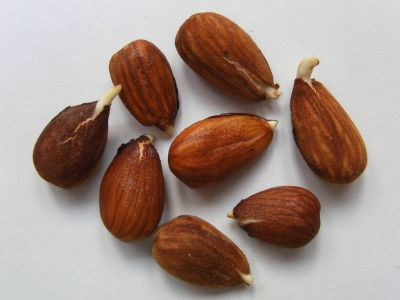 - Prunus dulcis var. amara: Bittermandel mit bitter schmeckenden Kernen: Sie enthalten Amygdalin, aus dem durch das Enzym β-Glucosidase Blausäure (HCN) entsteht